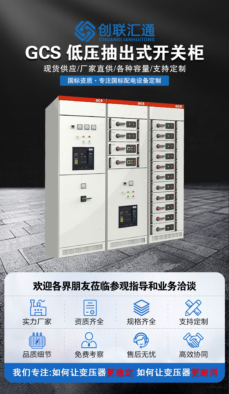 GCS柜裝置適用于發(fā)電廠、石油、化工、冶金、紡織、高層建筑等行業(yè)的配電系統(tǒng)。